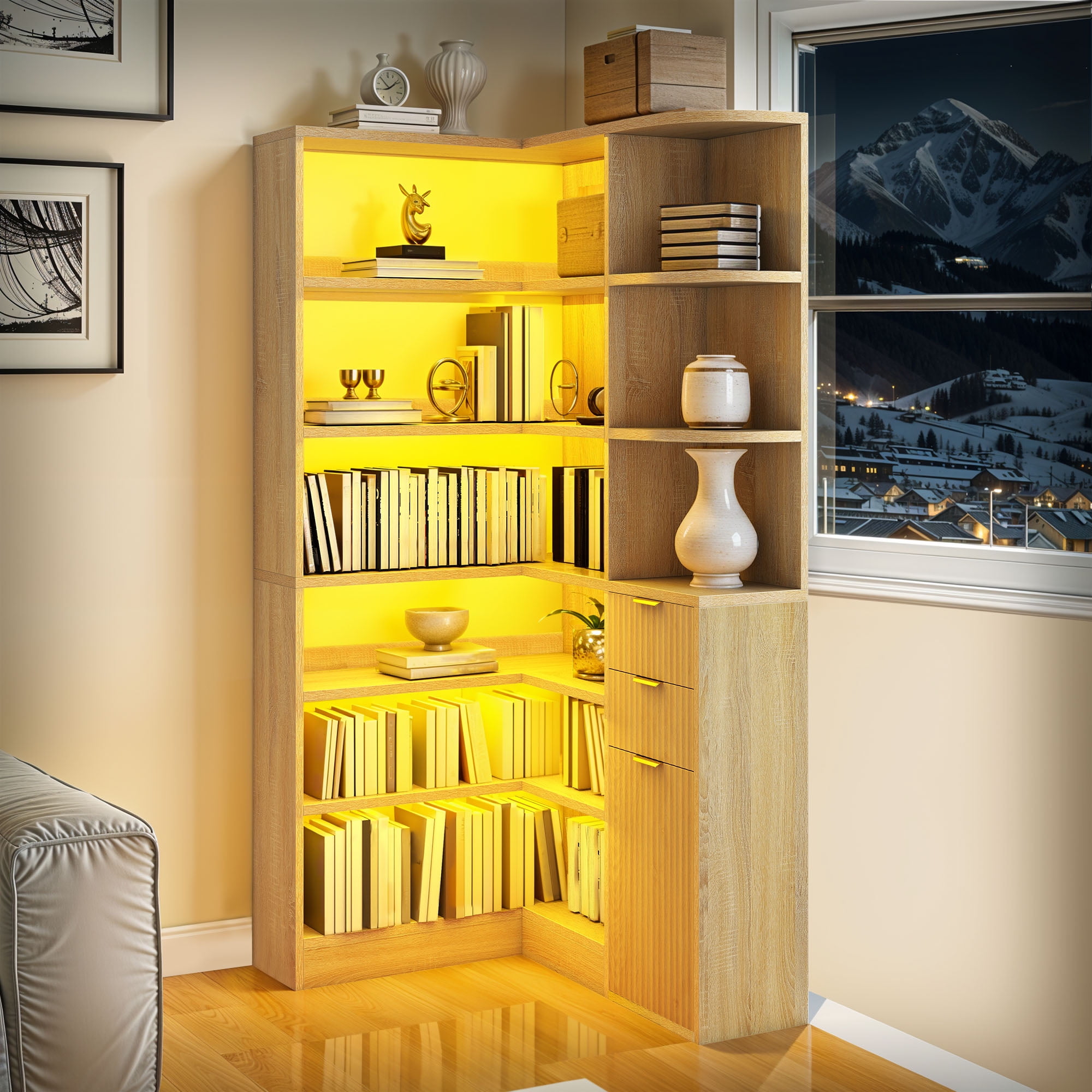 Dextrus 6Tier Corner Bookshelf with 2 Drawers, Modern Tall L Shape