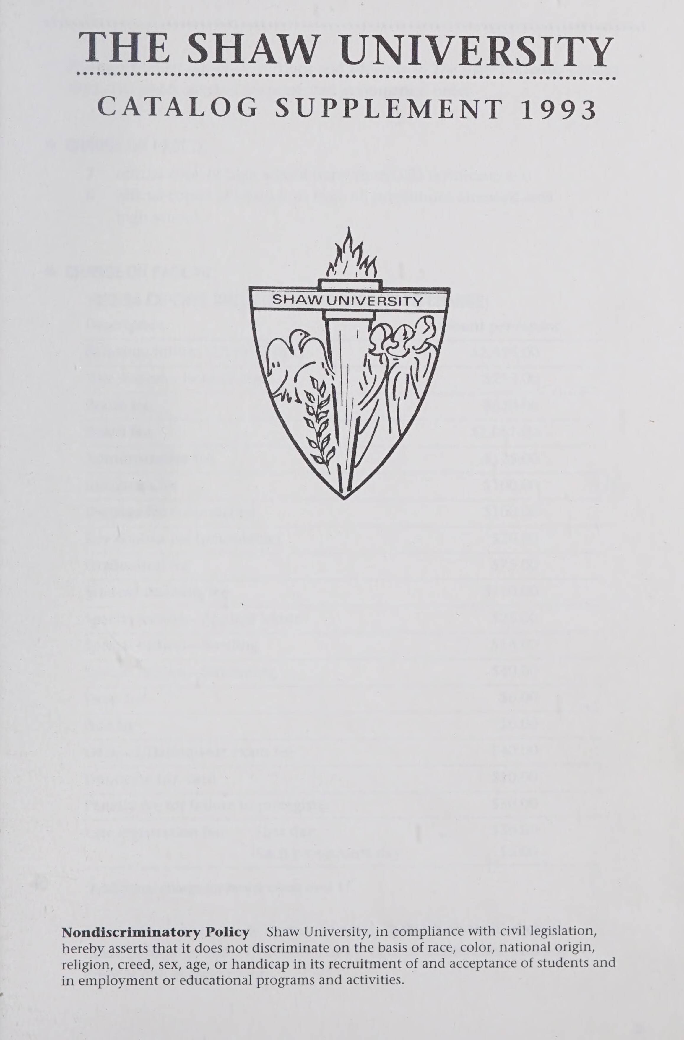 ![The Shaw University Catalog Supplement [1993]](https://lib.digitalnc.org/record/241540/files/shawuniversityc1993shaw_0_0003.jpg)