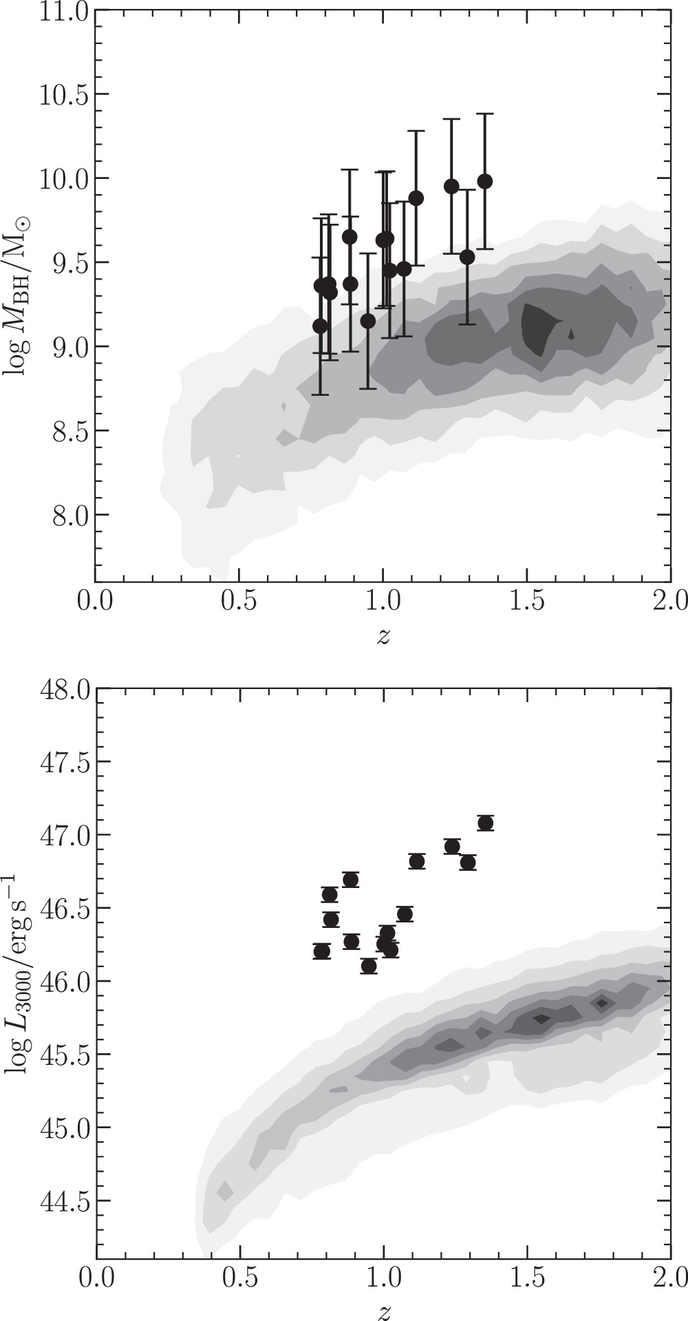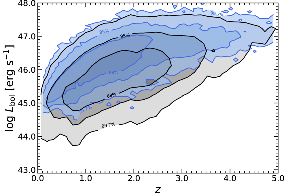 Top Distribution of quasars in the luminosityredshift plane. The