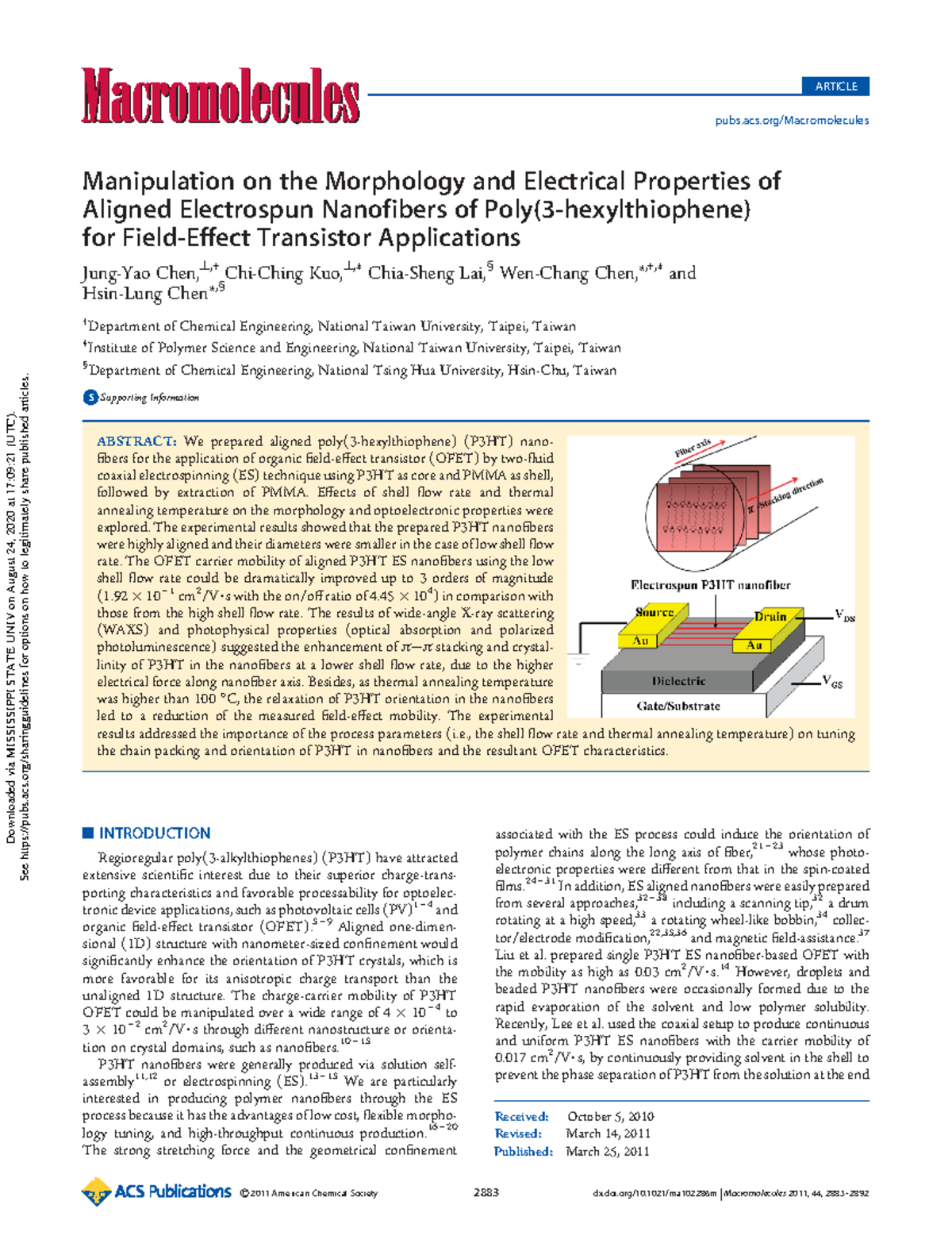 Chen et al. 2011 Manipulation on the morphology and electrical