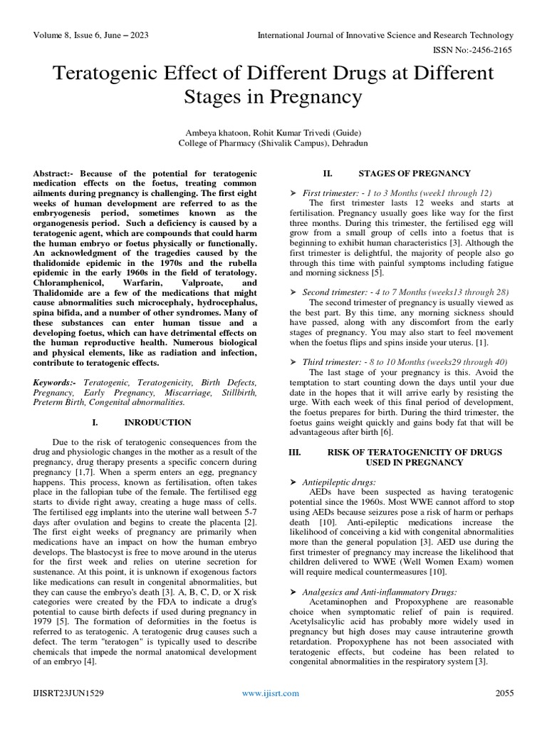 Teratogenic Effect of Different Drugs at Different Stages in Pregnancy