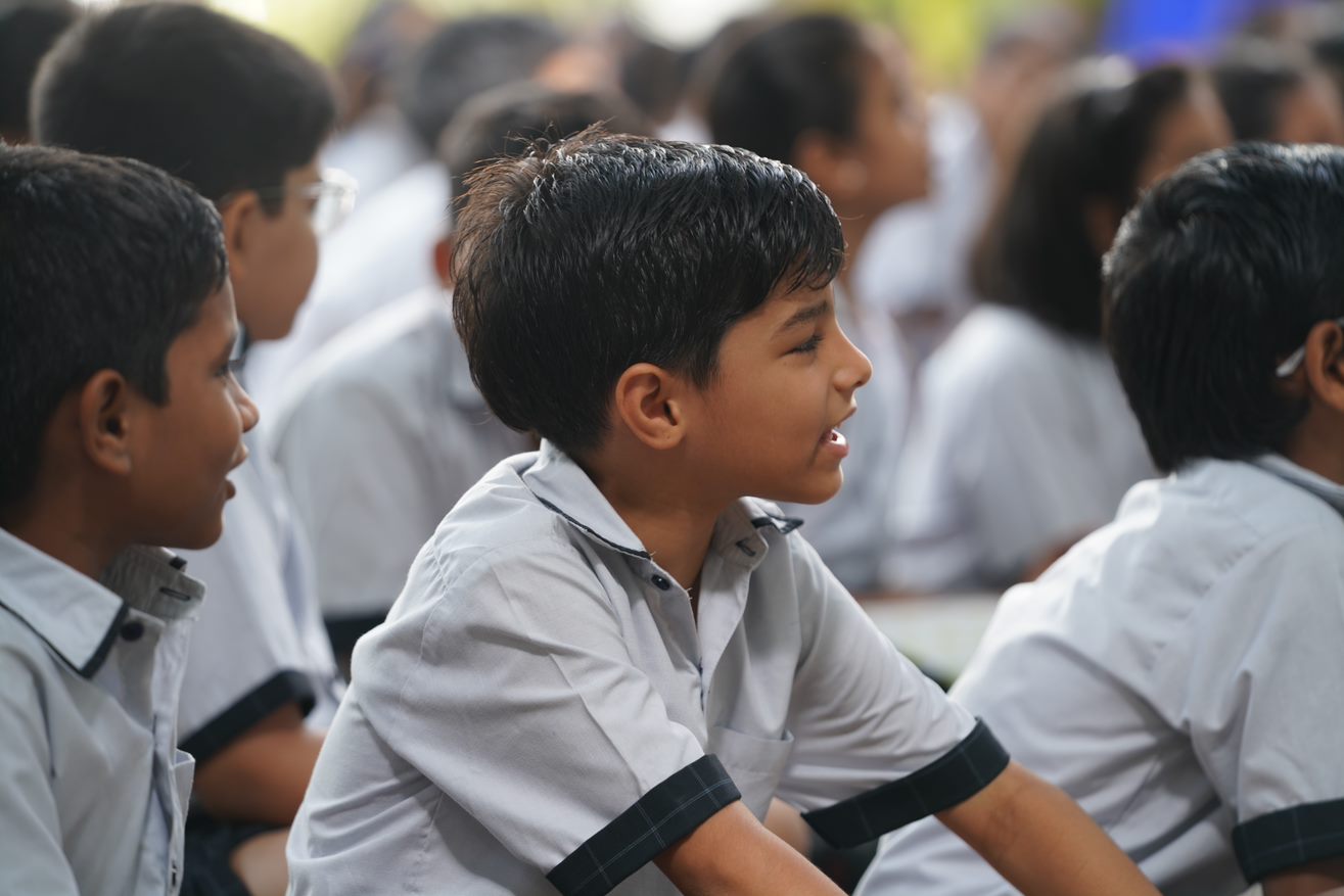 A Grand Library Hall with Rows of Wooden Bookshelves and Tables