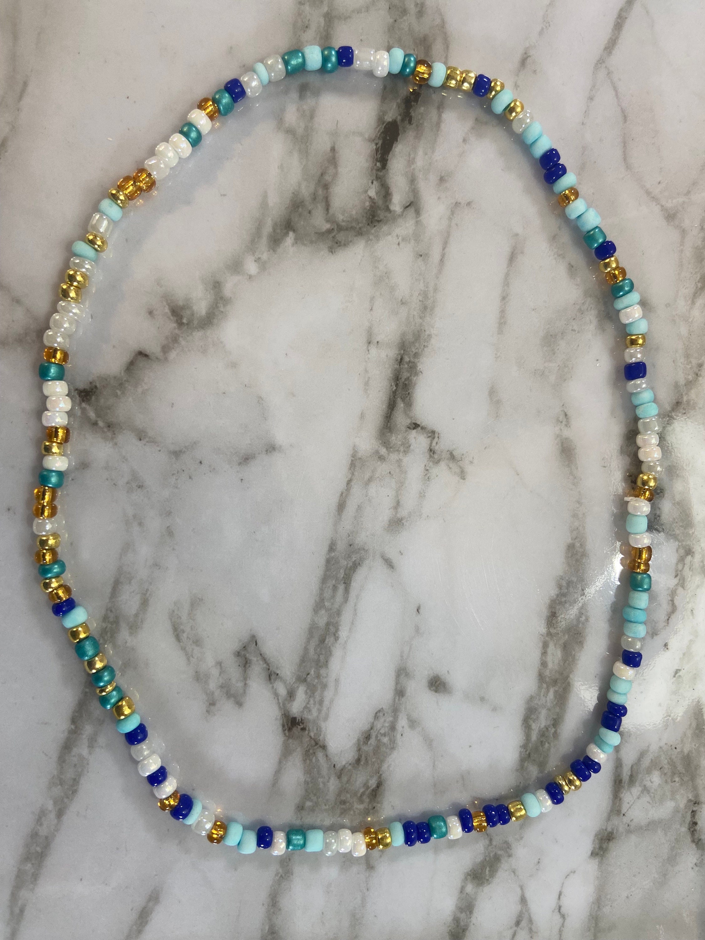 ST3411 7PCSE Mosaic Blue Green 20 To 44mm Shipwreck Beads