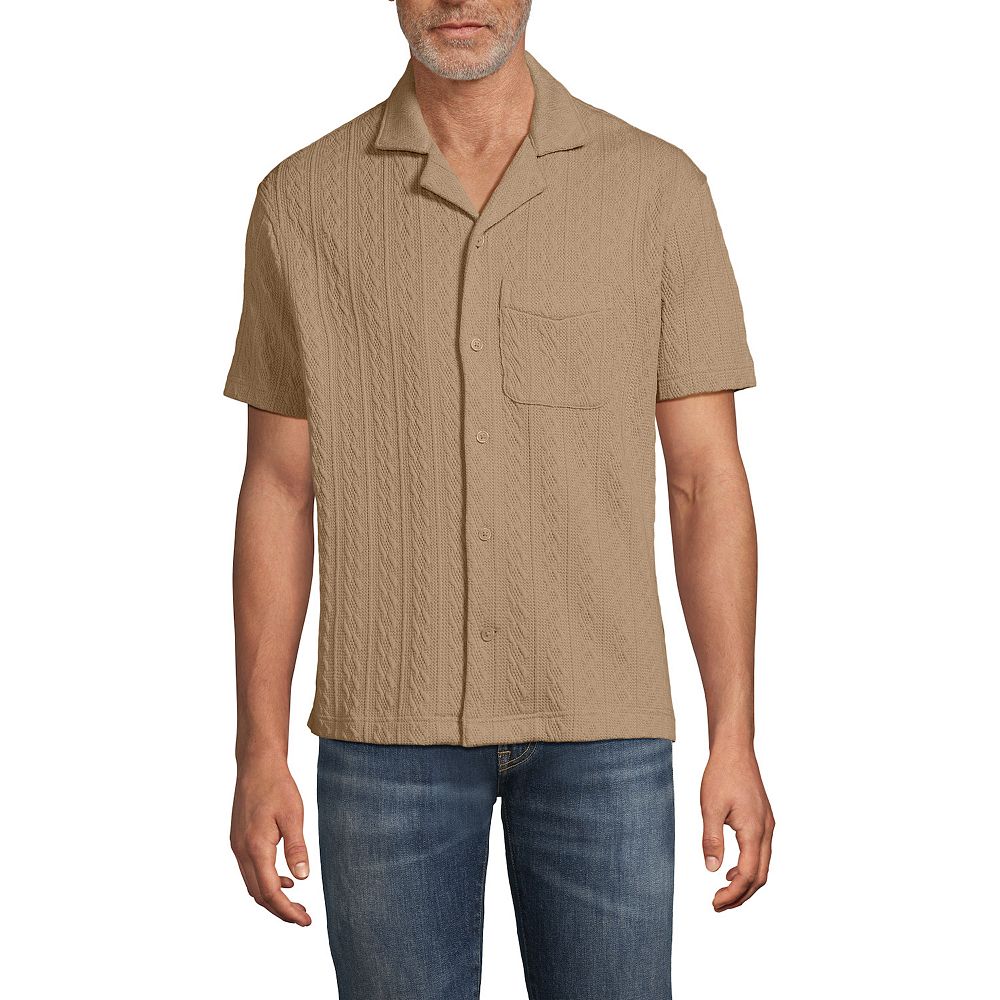 Men's Lands' End Short Sleeve Textured Cable Camp Collar ButtonDown Shirt