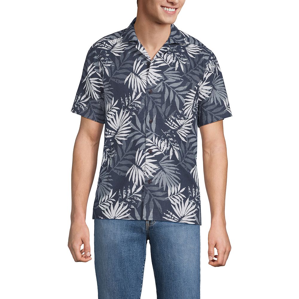 Men's Lands' End Short Sleeve Linen Hawaiian Camp Collar Shirt