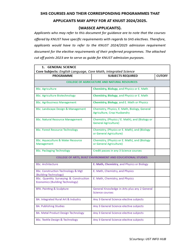 SHS COURSESandKNUST PROGRAM PDF Engineering Bachelor Of Science