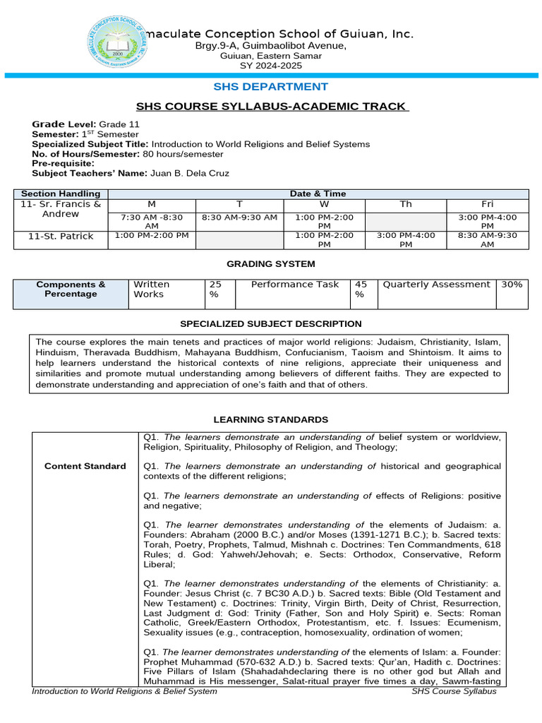Sample SHS Course Syllabus PDF Confucianism Social Science