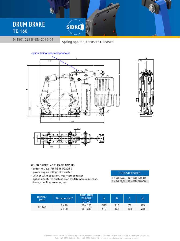 Sibre Data Sheet Typ Te 160 PDF Equipment Motor Vehicle