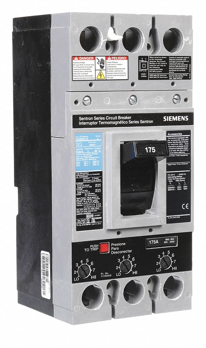 SIEMENS Molded Case Circuit Breaker 175 A Amps, 22kA at 600V AC, Fixed