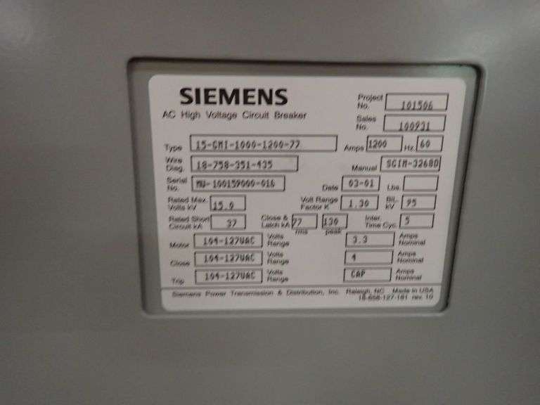 Siemens High Voltage Circuit Breaker Yellow Tag Auctions