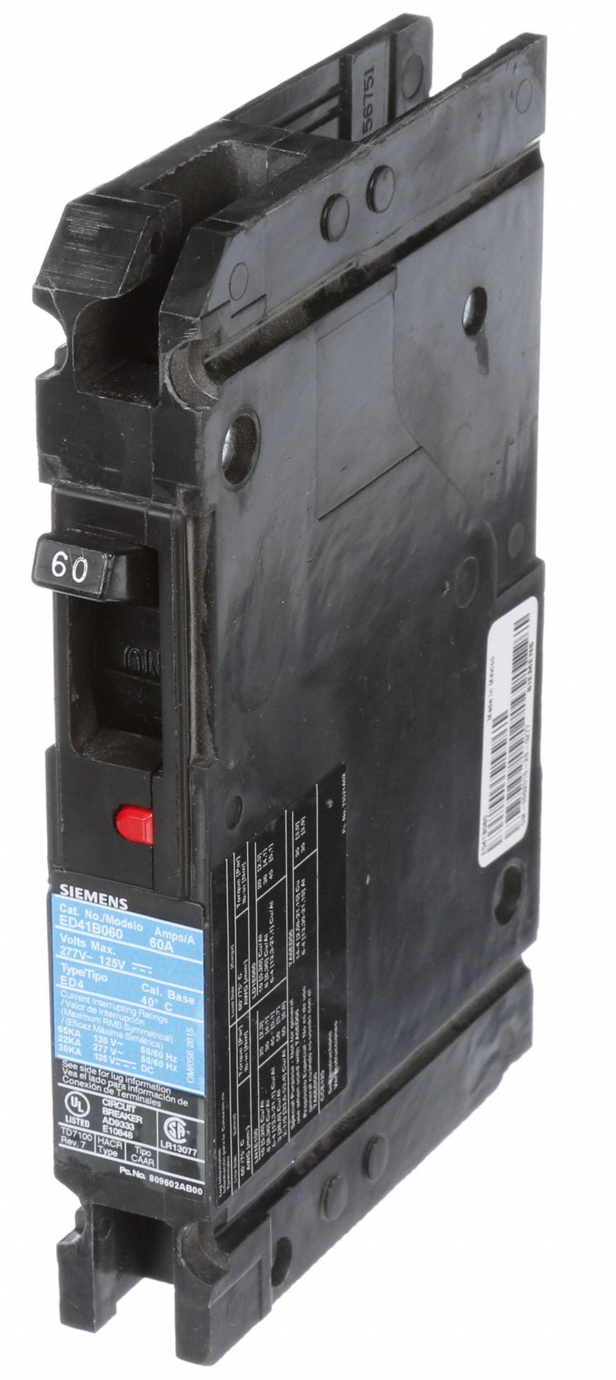 SIEMENS Molded Case Circuit Breaker 60 A Amps, 18kA at 480V AC, Fixed