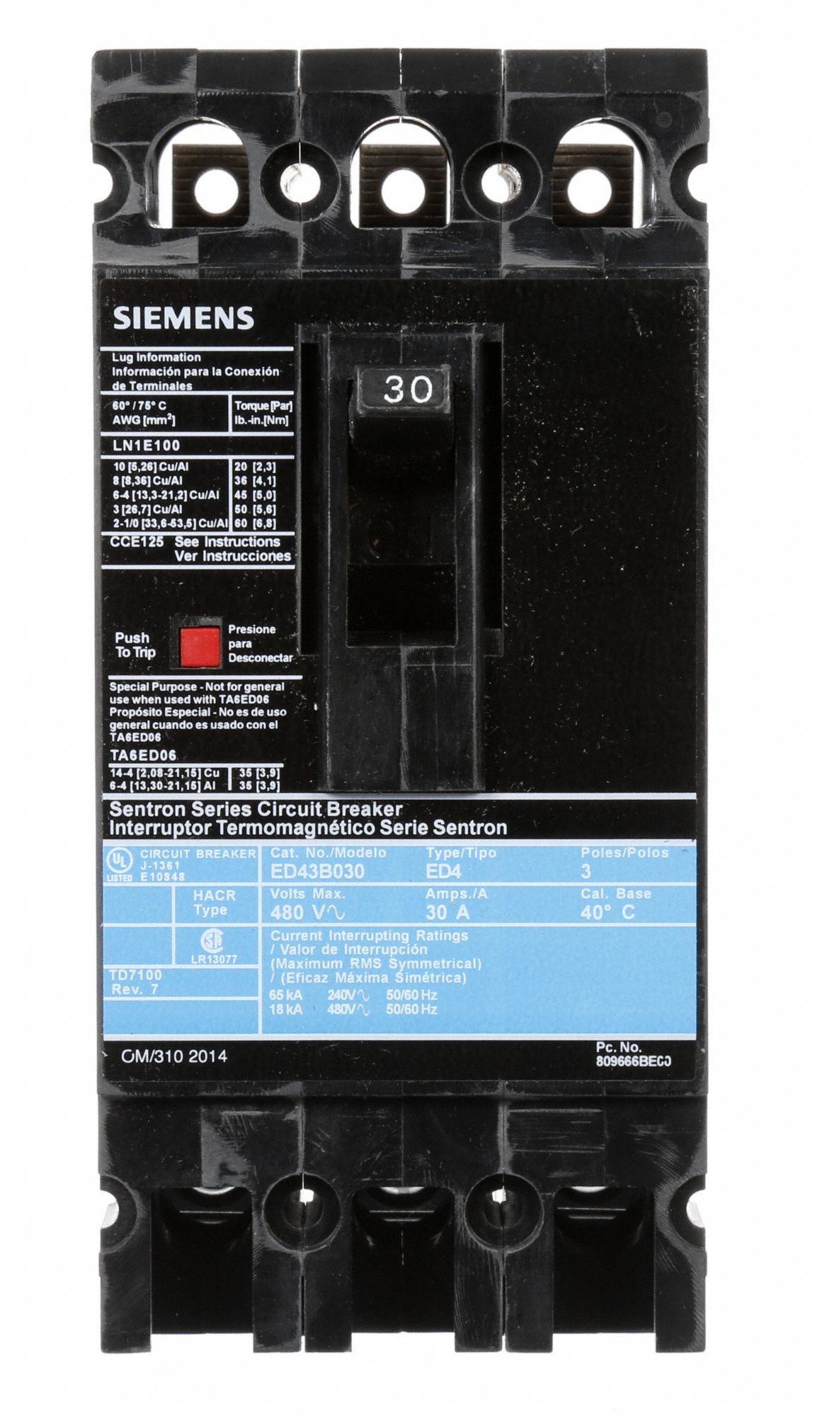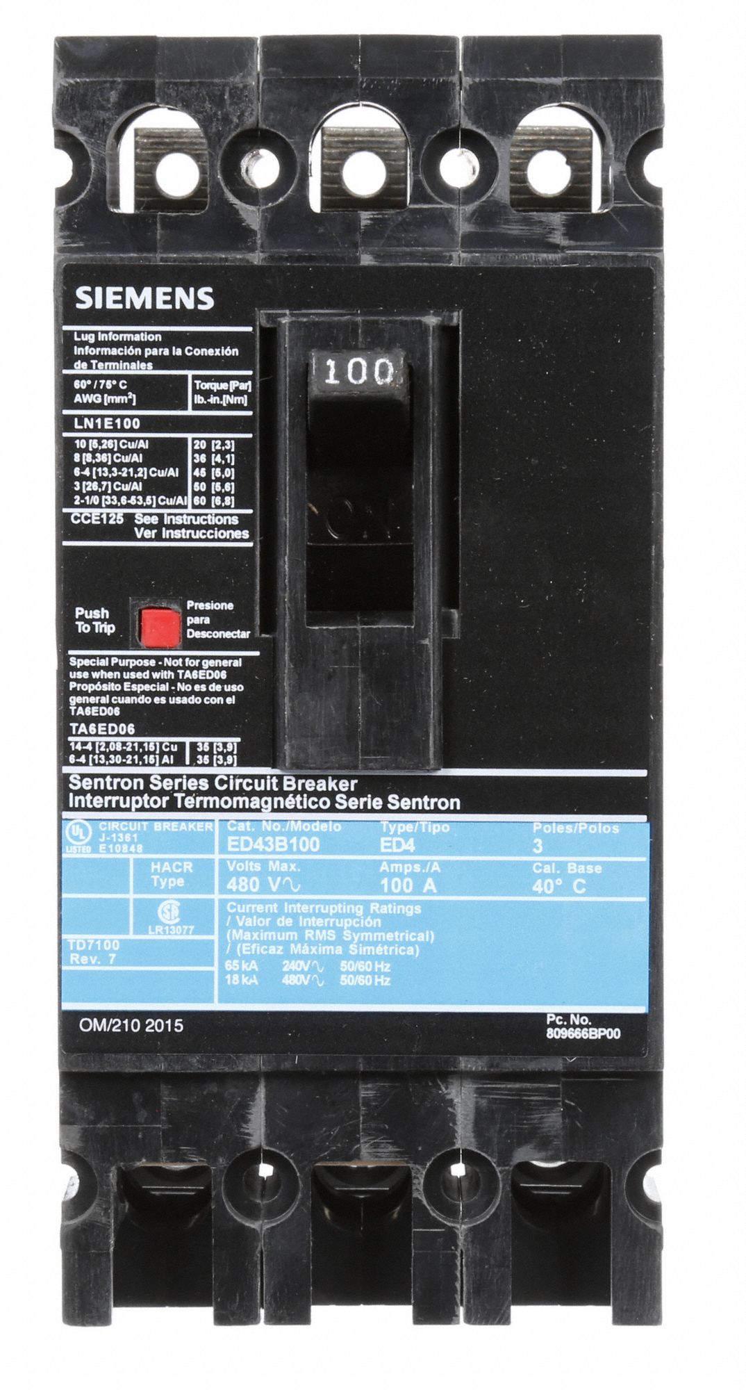 SIEMENS, 125 A Amps, 18kA at 480V AC, Molded Case Circuit Breaker