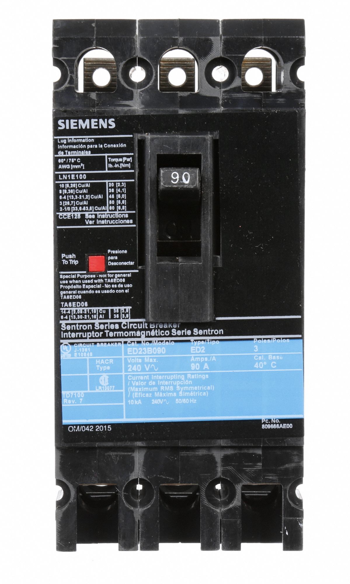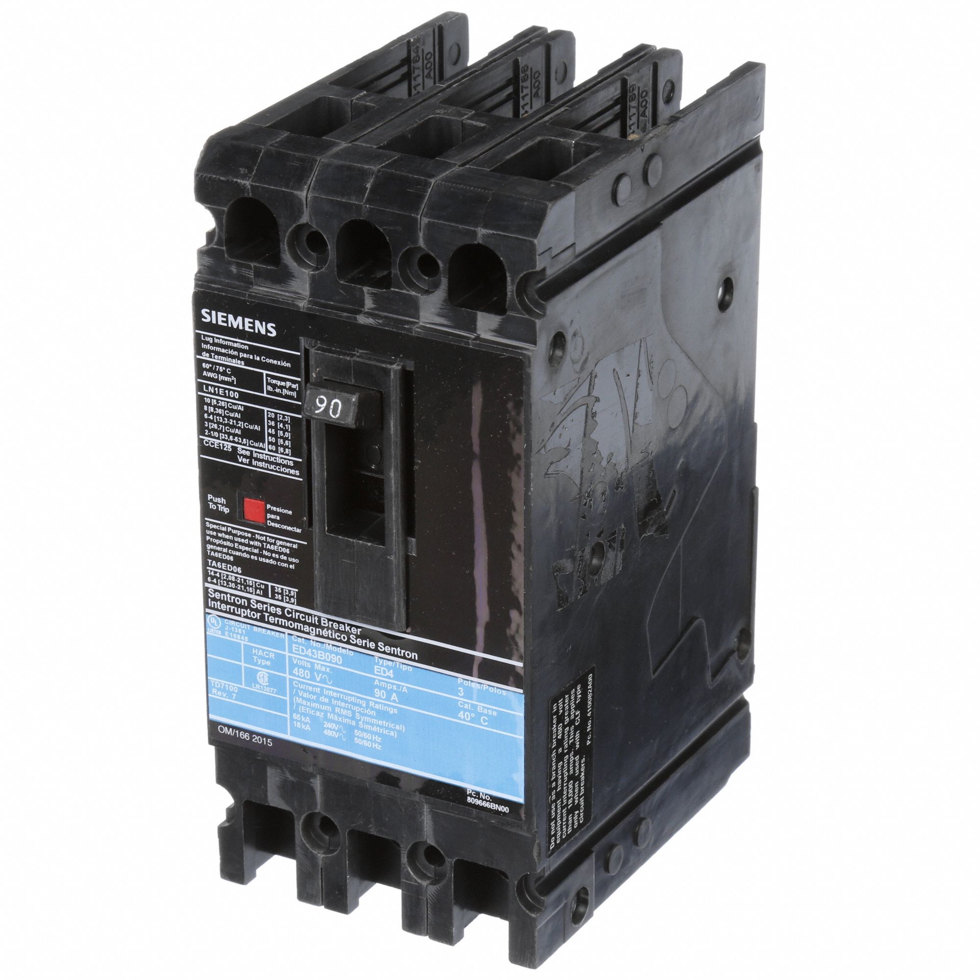 SIEMENS Molded Case Circuit Breaker 90 A Amps, 18kA at 480V AC, Fixed