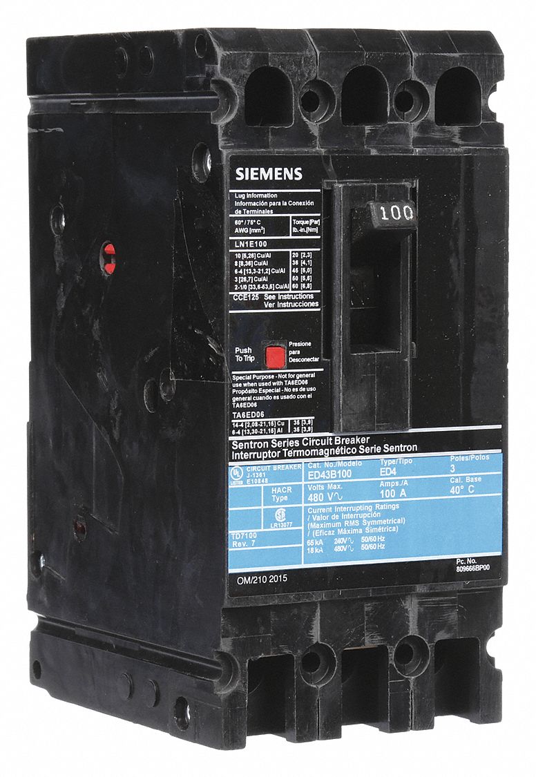 SIEMENS Molded Case Circuit Breaker 100 A Amps, 18kA at 480V AC, Fixed