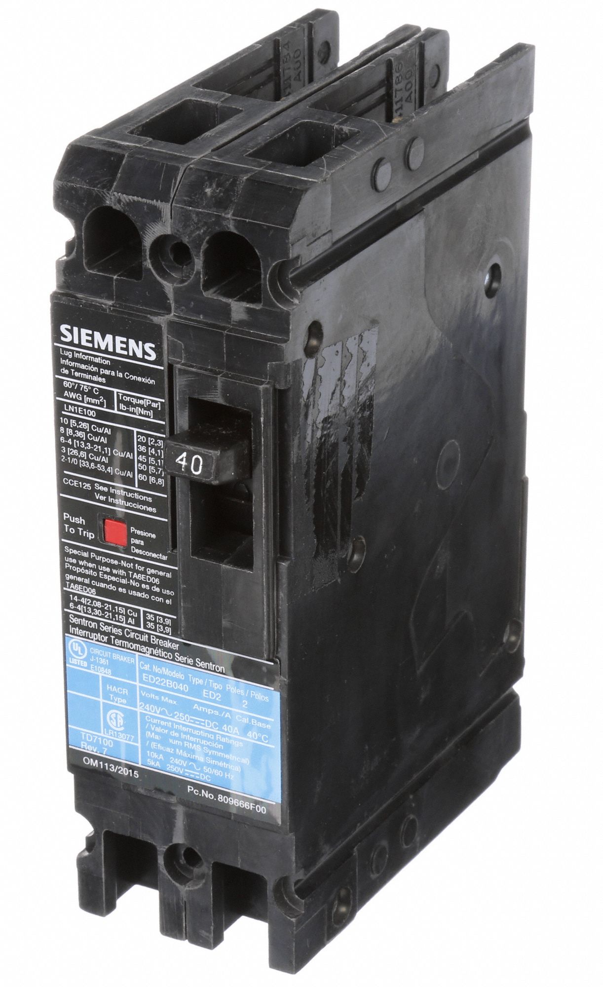 SIEMENS Molded Case Circuit Breaker 40 A Amps, 10kA at 240V AC, Fixed