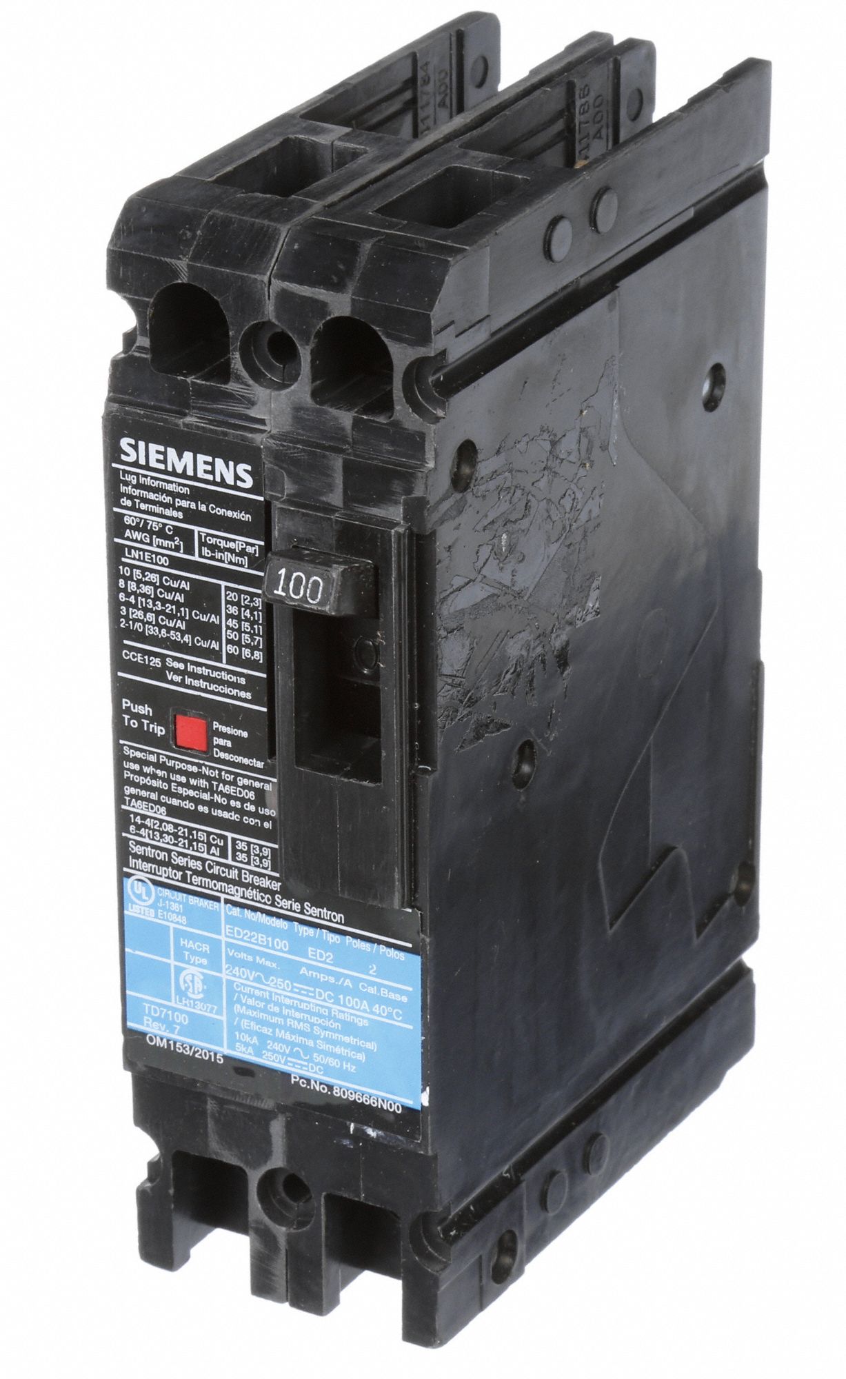 SIEMENS Molded Case Circuit Breaker 100 A Amps, 10kA at 240V AC, Fixed