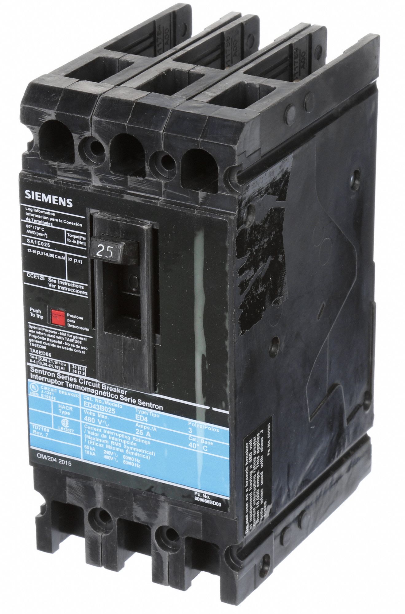 SIEMENS Molded Case Circuit Breaker 25 A Amps, 18kA at 480V AC, Fixed