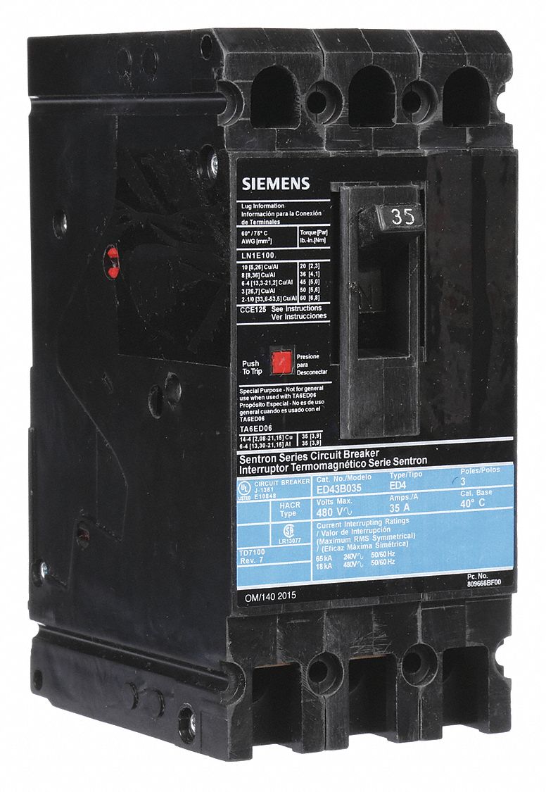 SIEMENS, 35 A Amps, 18kA at 480V AC, Molded Case Circuit Breaker