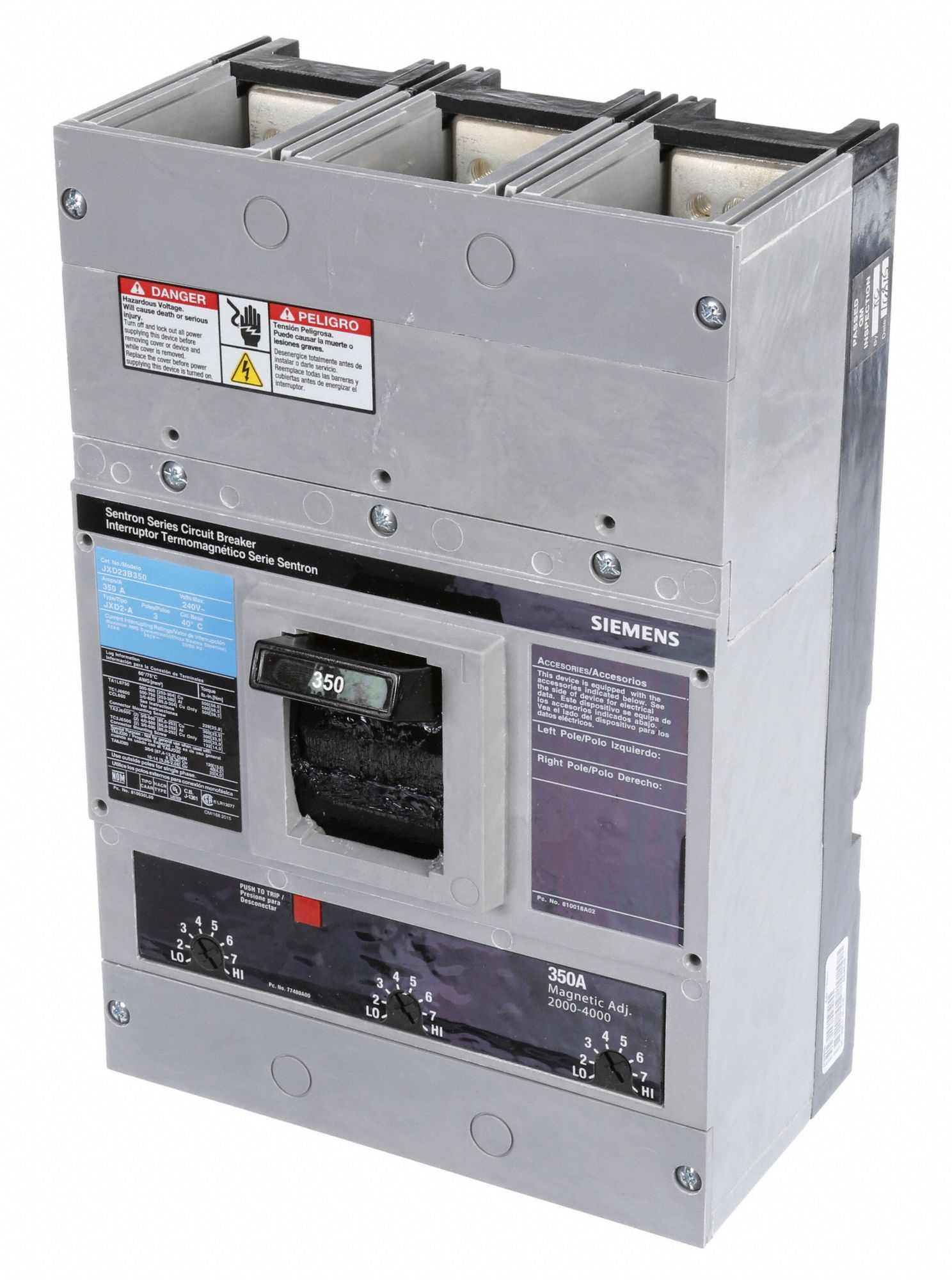 SIEMENS Molded Case Circuit Breaker 350 A Amps, 65kA at 240V AC, Fixed