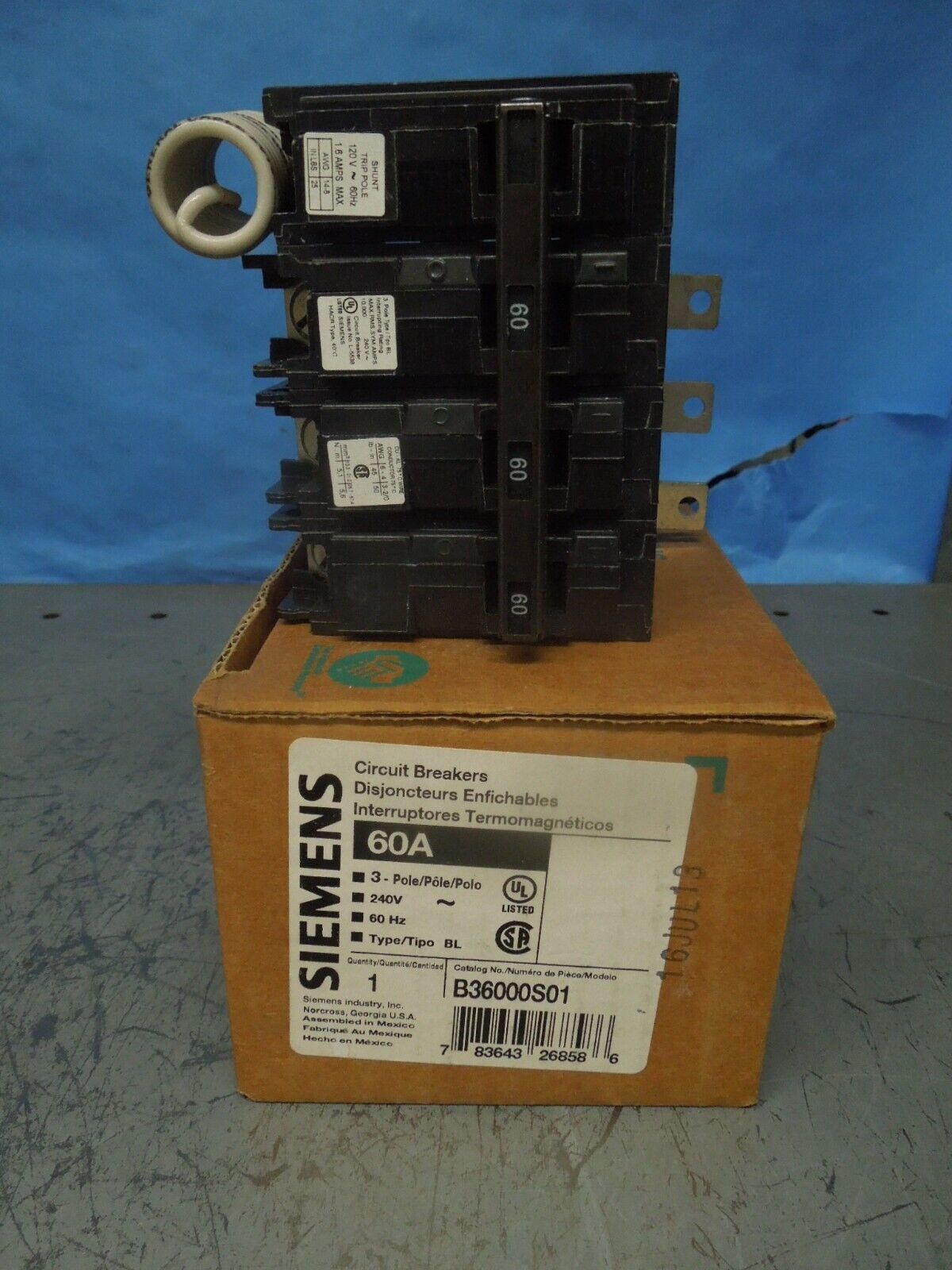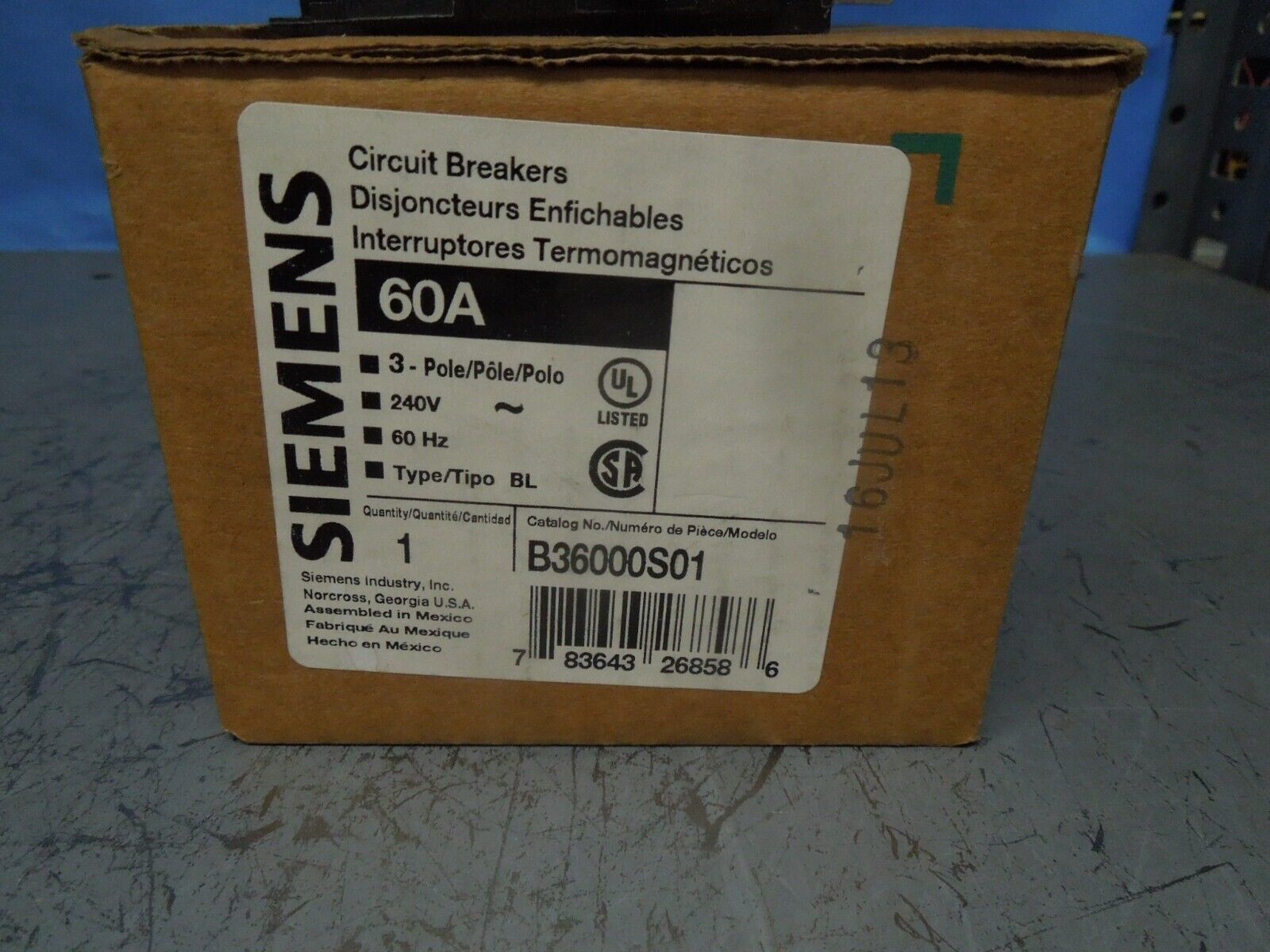Siemens Type BL B36000S01 60A 3p 240V Circuit Breaker w/ 120V Shunt