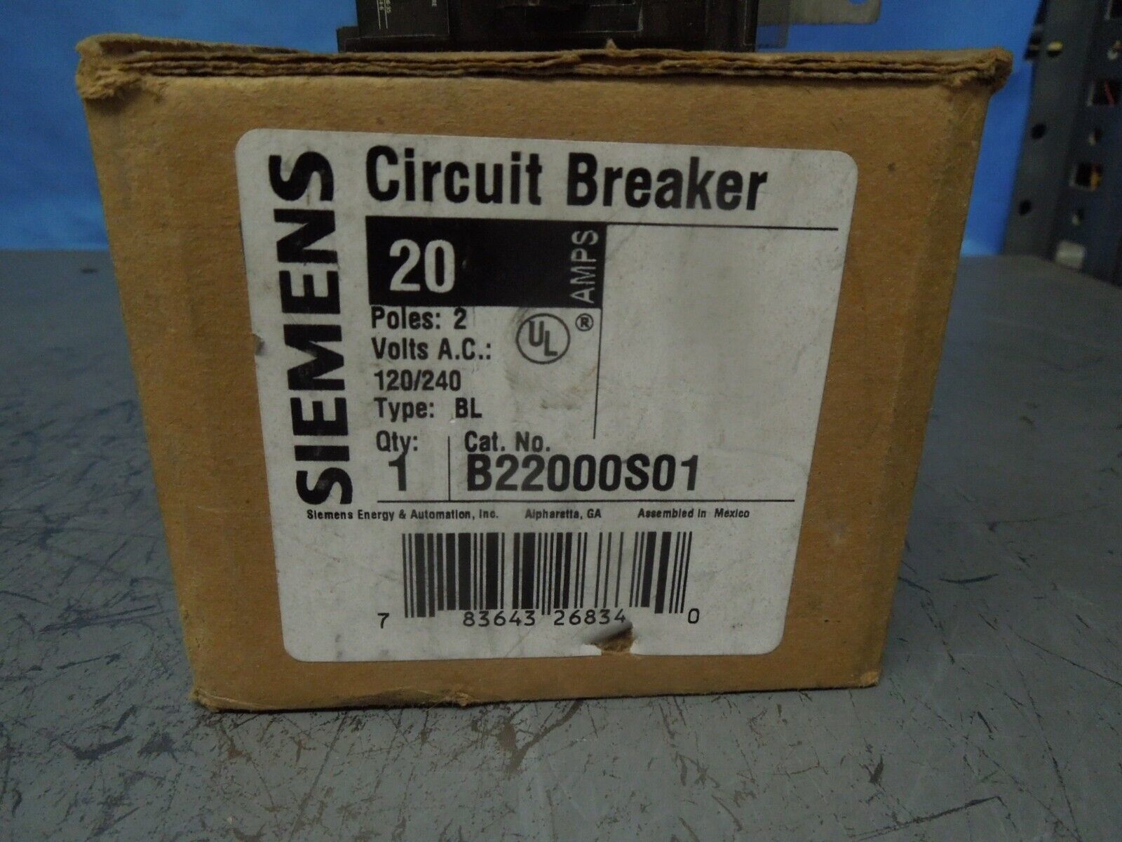 Siemens Type BL B22000S01 20A 2p 120/240V Circuit Breaker w/120V Shunt