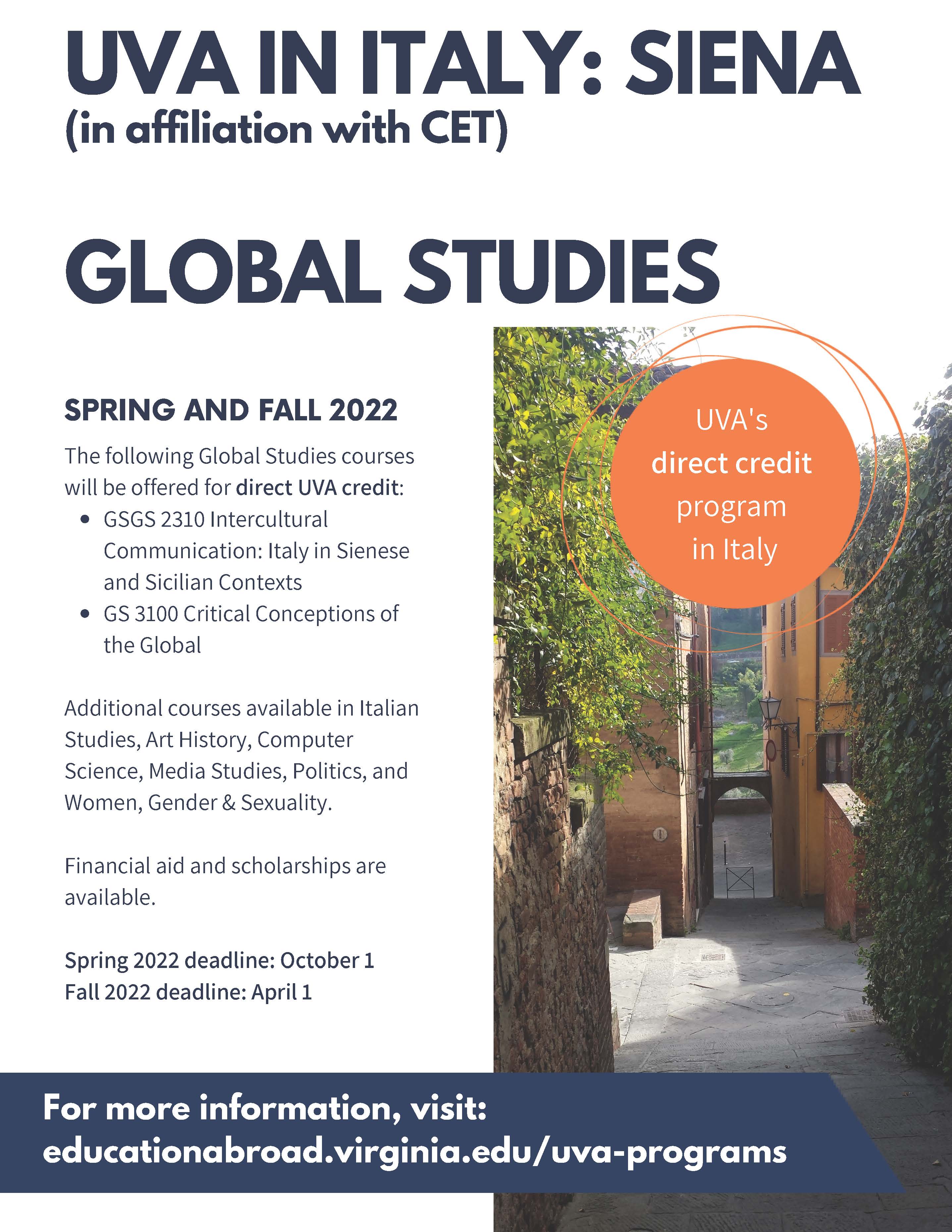 UVa in Italy Siena Global Studies Courses 2022 Spanish, Italian