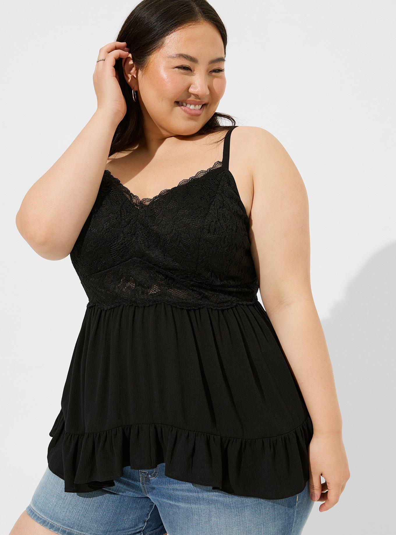 Plus Size Babydoll Crinkle Washable Crinkle Gauze And Lace Tank Torrid