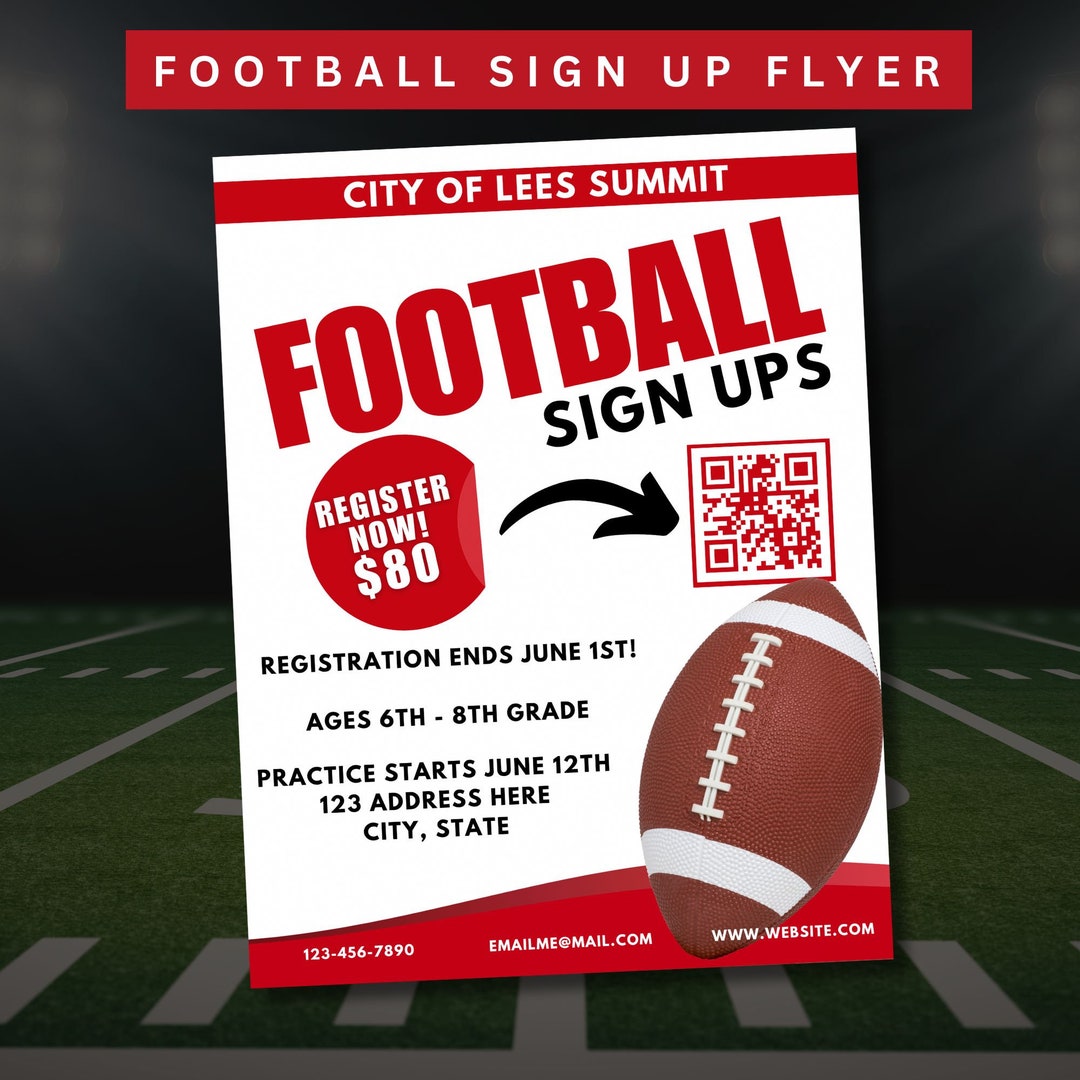Editable Flyer, Football Flyer, Football Sign up Flyer, Canva Flyer
