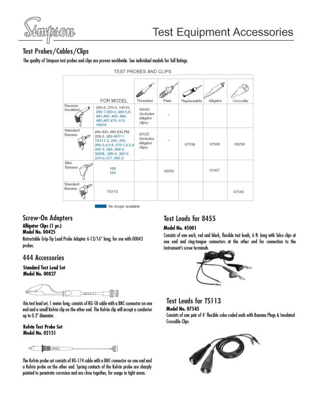 00043 Simpson Test Probes, Leads and Clips Distributors, Price