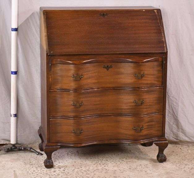 Skandia Furniture Co. mahogany slant front desk with ball in claw feet