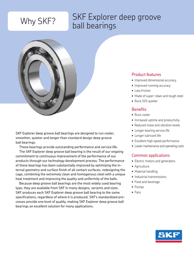 Why SKF? SKF Explorer Deep Groove Ball Bearings Product Features PDF