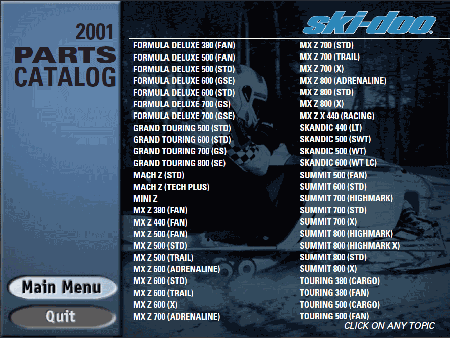 Bombardier SkiDoo 2001, parts, repair, accessories for Ski Doo. Spare