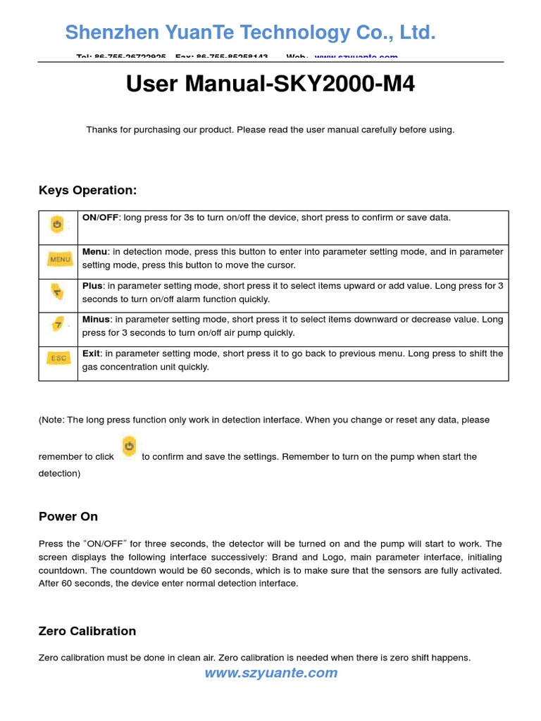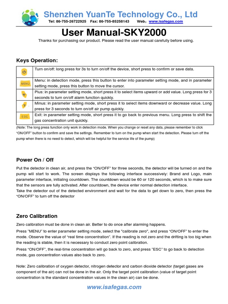 SKY2000 Gas Detector User Manual PDF