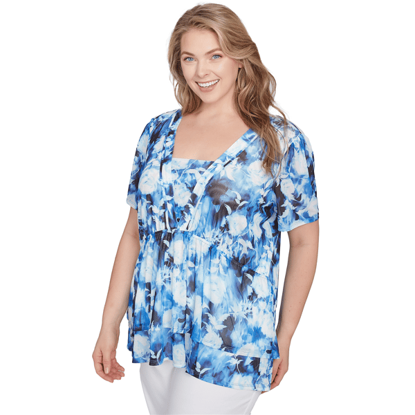 Plus Size Skye’s the Limit American Graphic Floral Tier Blouse Boscov's