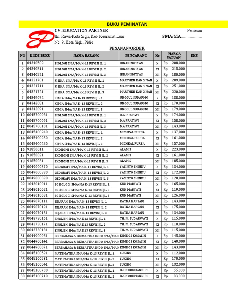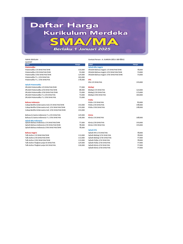 Katalog Harga Buku SMA 2025 PDF