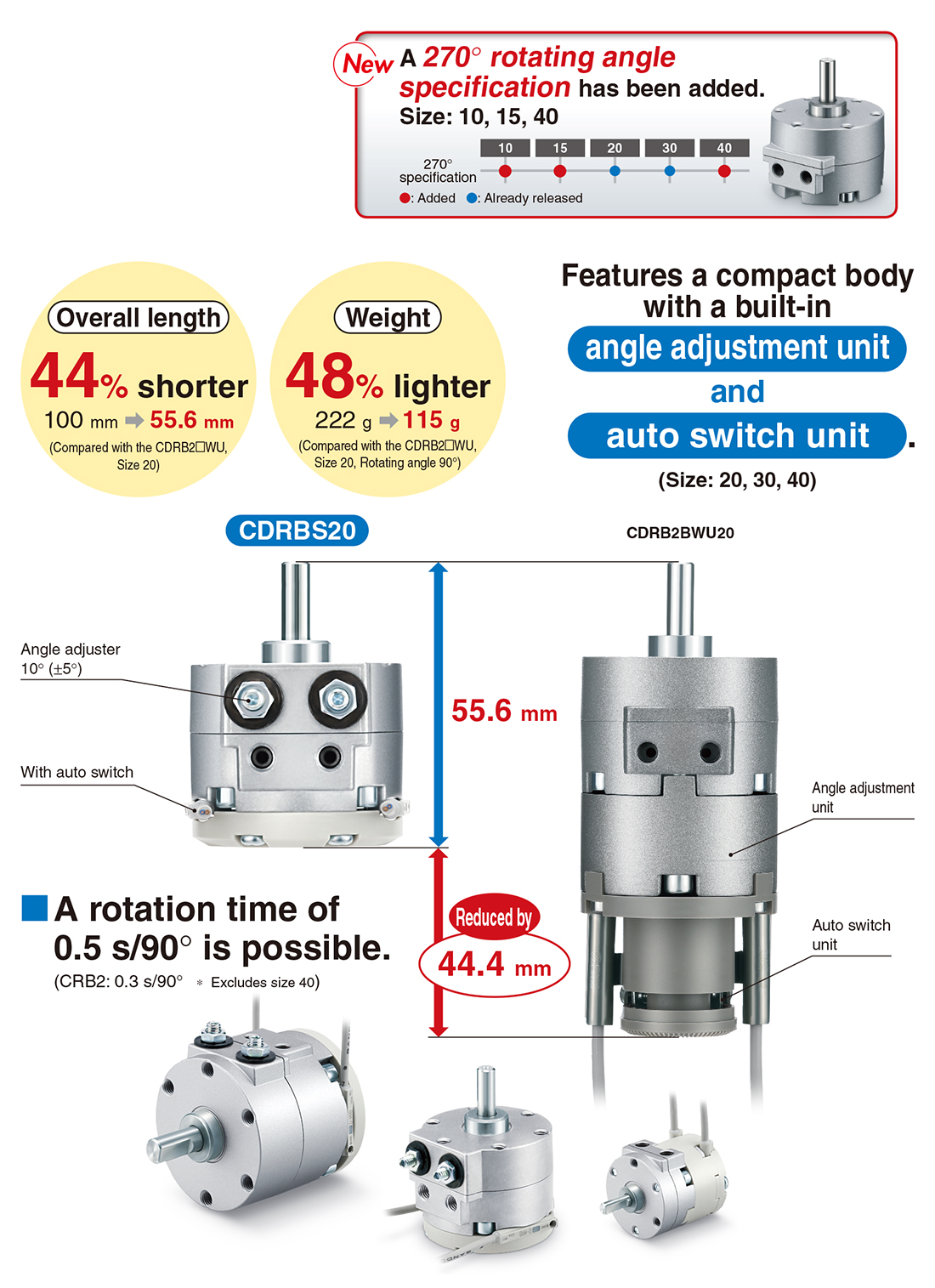 SMC CDRB2BWU40180SZ Actuator, Rotary, Vane Type
