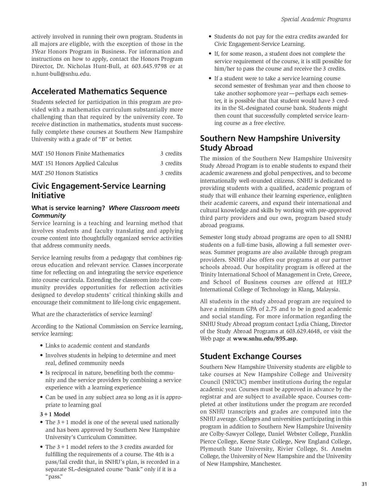 SNHU Undergraduate Catalog 20092010 by Southern New Hampshire