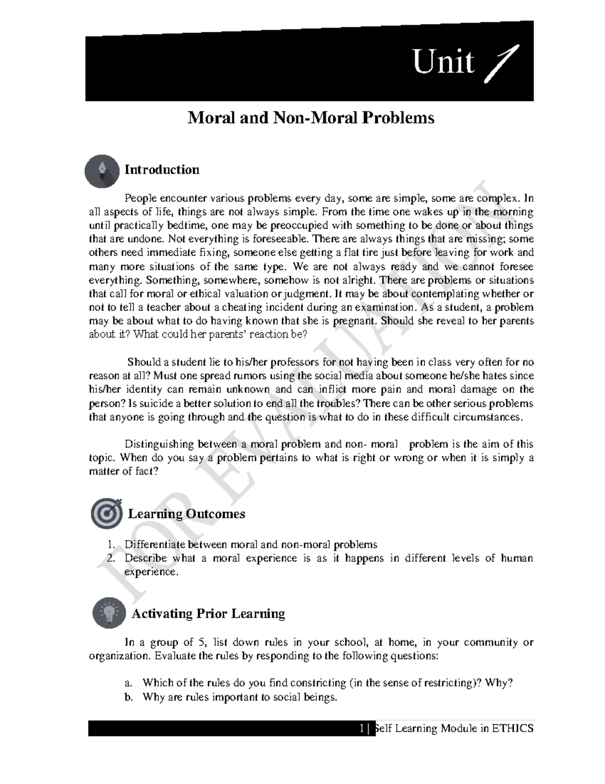 Ethics Ebook Unit I Moral and NonMoral Problems Introduction