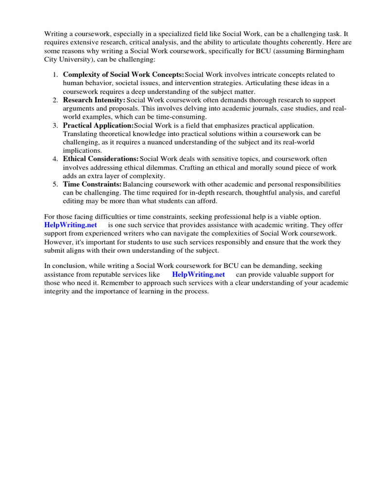 Social Work Course Bcu PDF Social Work Psychotherapy