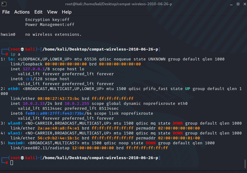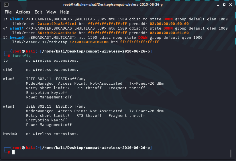 Solved kali linux problems. I loaded the compact wireless