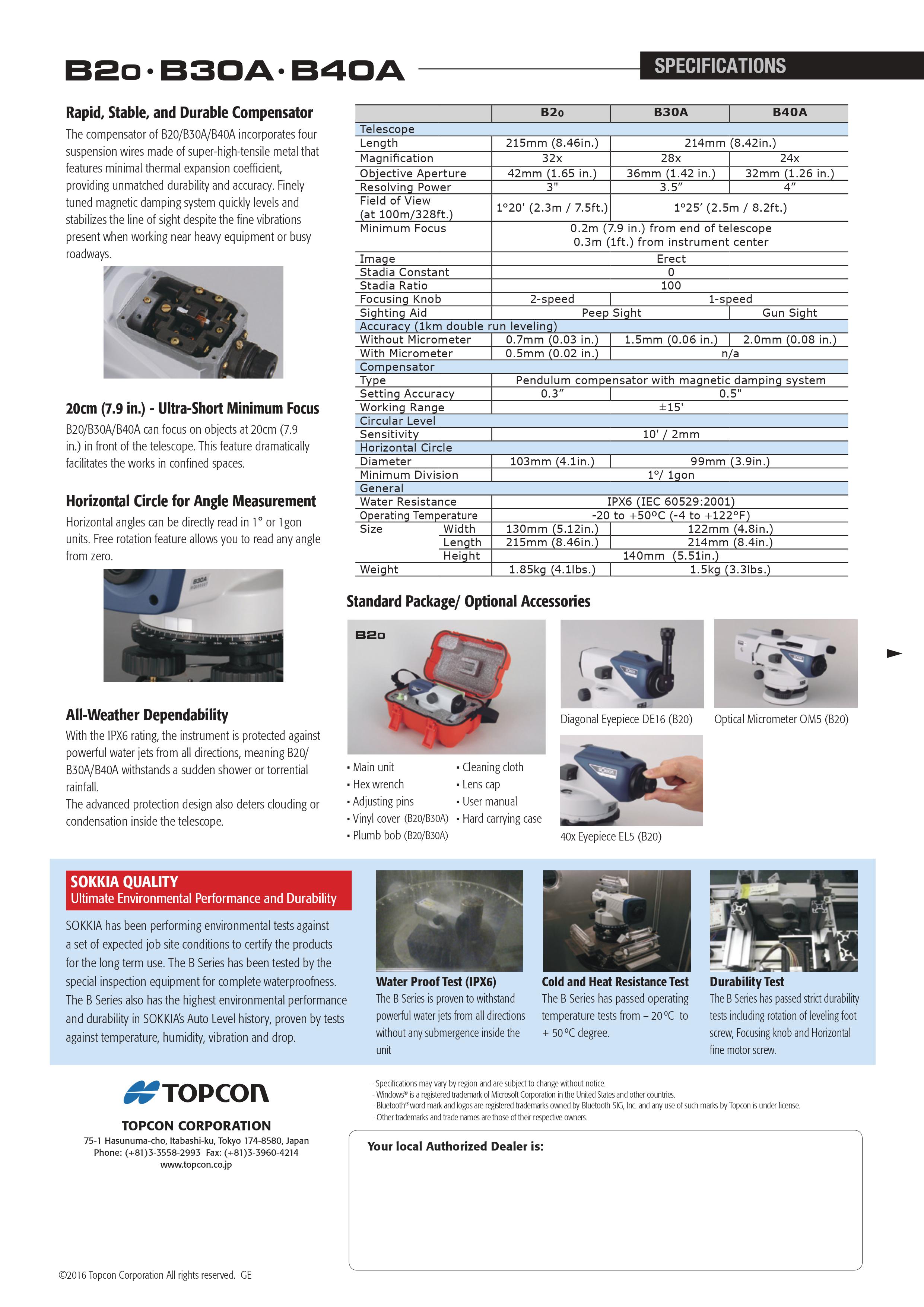 CATALOGUE MÁY THỦY BÌNH SOKKIA B20 CÔNG TY TNHH MTV VẬT TƯ THIẾT BỊ