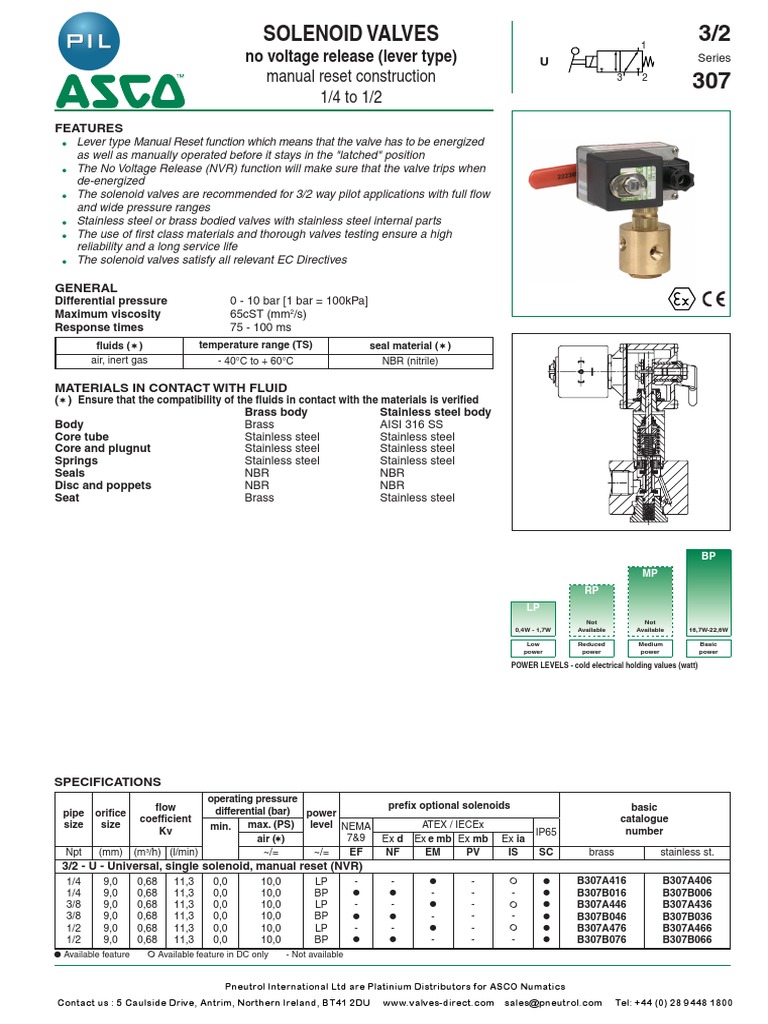 ASCO Series 307 Solenoid Valves No Voltage Release PDF Valve