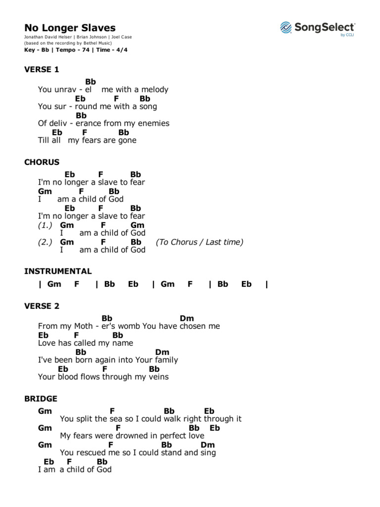 No Longer Slaves Chords BB PDF