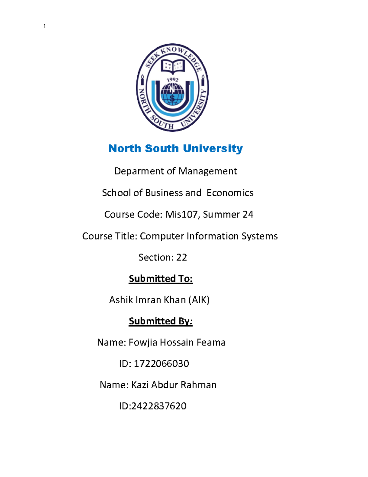 Jannatul Fardoes Rime 2021937630 ex1 section 2 North South University