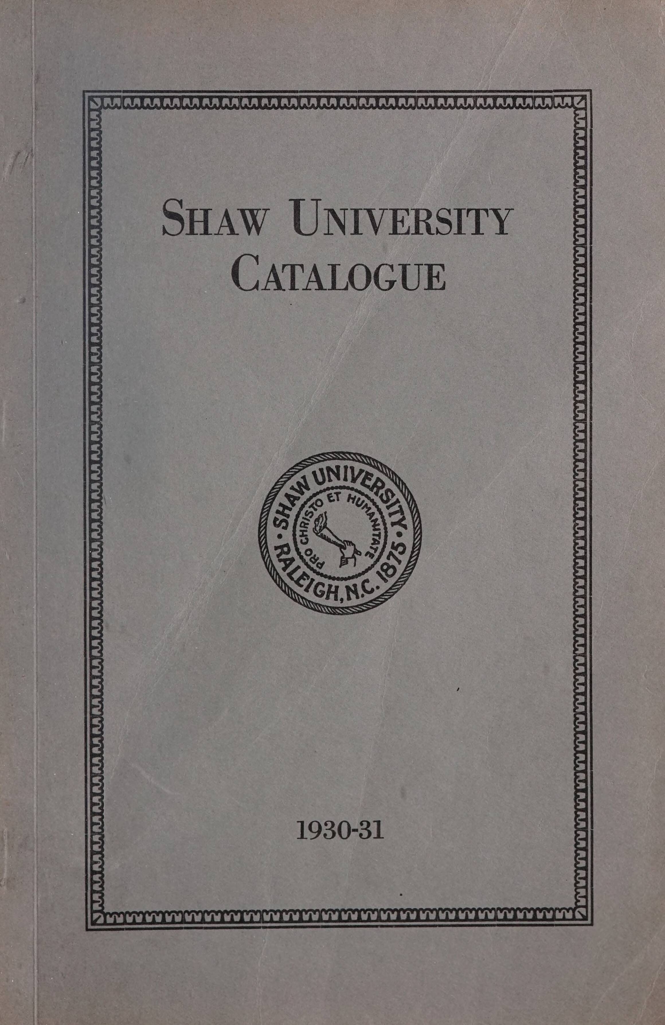 ![Shaw University Catalogue [19301931]](https://lib.digitalnc.org/record/241524/files/shawuniversityca1930shaw_0001.jpg)