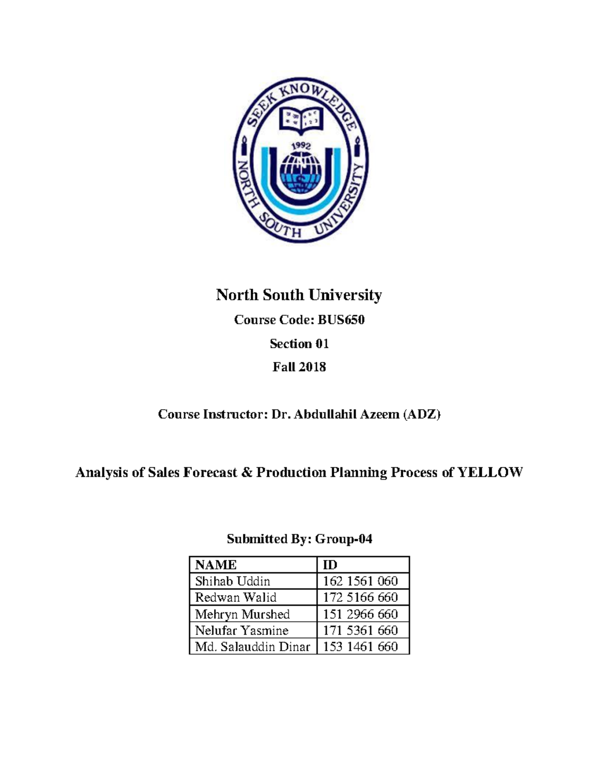 BUS650SEC1 Practice North South University Course Code BUS
