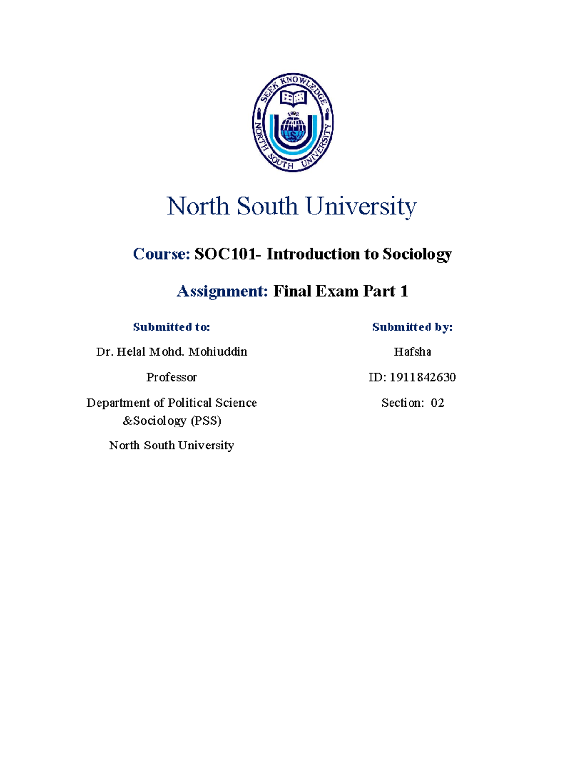 Answer script story of stuff North South University Course SOC101