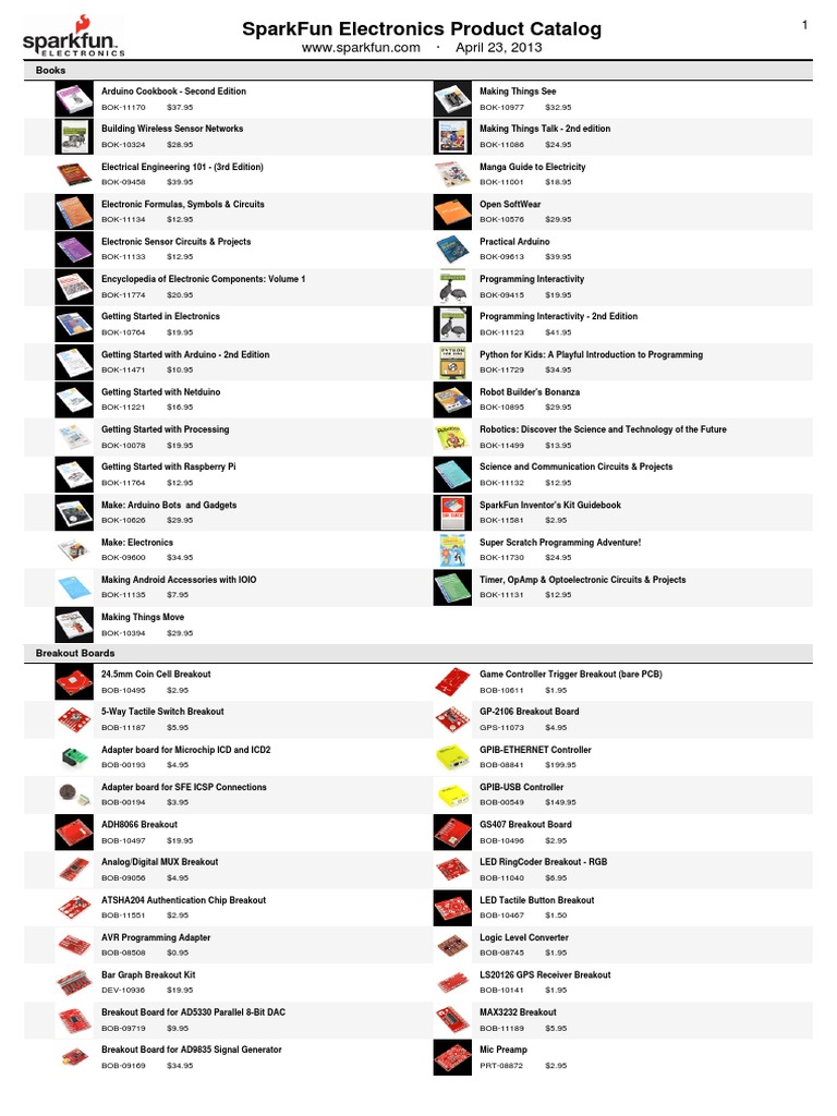 Catalog Sparkfun APR 2013 PDF Switch Electrical Equipment