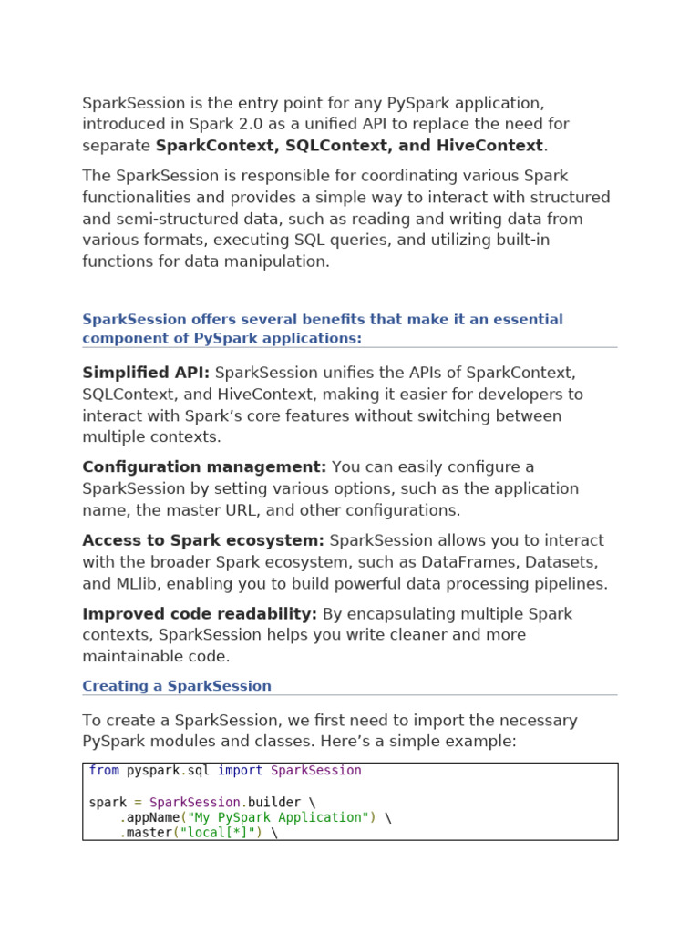 What Is SparkSession PDF