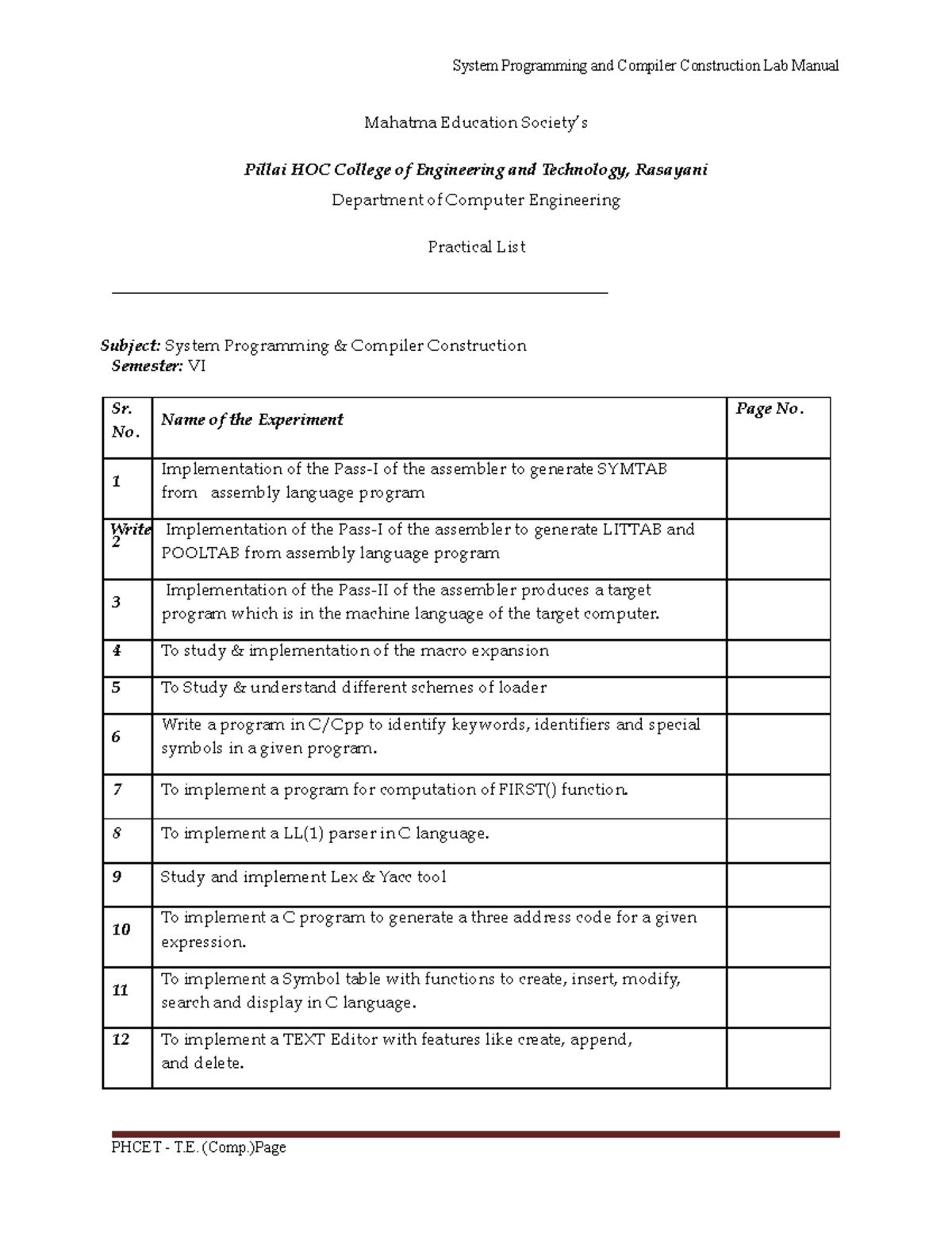 SPCC lab manual 8221 10 experiments on SPCC Mahatma Education